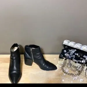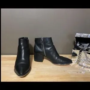 📌. EXCELLENT CONDITION beautiful leather heeled ankle boots from MICHAEL KORS. Silver hardware buckle with brand name engraved on. Inside zipper closer. Leather upper and rubber outsole. The block heel is 2.5 inches tall. High end brand and quality.