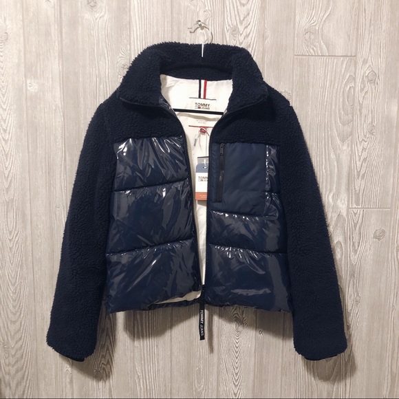 Tommy Jeans Two Tone Sherpa Gloss Puffer Jacket navy blue