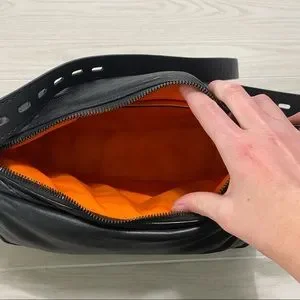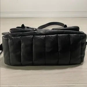 in great condition, outside of bag is in pristine shape, inside has some staining on the bottom pictured. have not tried to clean. only used a couple of times.