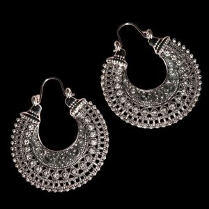 Silver Boho Filigree Lace Earrings India Hollow Huggie Hoops Tribal Bohemian New