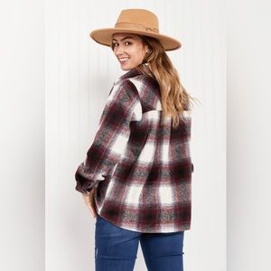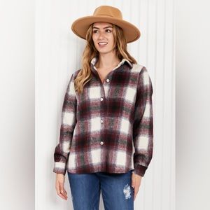 Comfy Relaxed Plaid Flannel Button Up Jacket