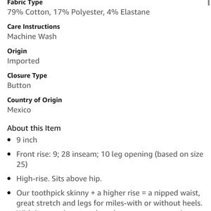 *Front rise: 9; 28 inseam; 10 leg opening (based on size 25)