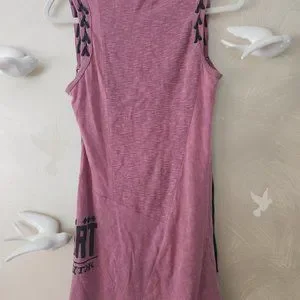 Pink Salvage long tunic shirt with fridges for added detail. Size Medium.