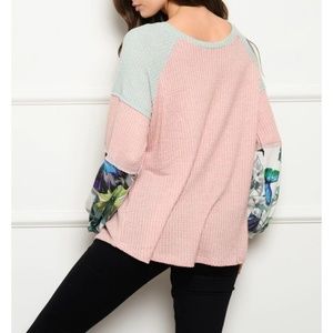 Add this cute Pink Color Contrast Long Sleeve Tunic Top . Available in sizes Small, Medium, & Large.