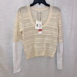 - Veronica Beard’s `Juni’ sweater achieves the layered look in one piece. Knitted from super soft merino wool fibers the ribbed layer is contrasted with dress shirt-inspired sleeves.