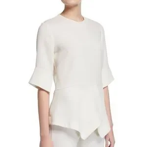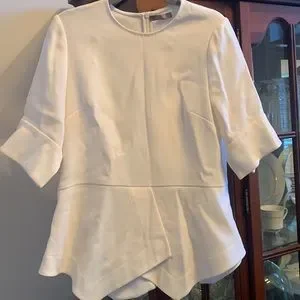 Lela Rose Crepe Top size 4. Purchased from The Real Real, see photos but no noticeable signs of wear and from a smoke free home. Beautiful top, just didn’t fit me! Color is a creamy off white/winter white.