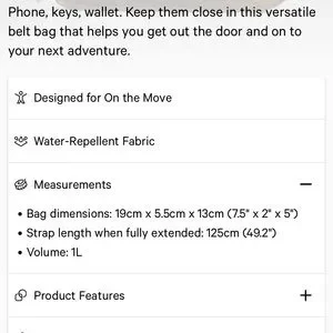 @j_derespino The dimensions are listed in a photo above. This is the regular size which can hold 1 Liter (the mini holds 0.7 Liter). The regular has a zippered bag pocket while the mini has a slip pocket. The regular has thicker straps.