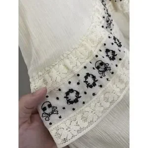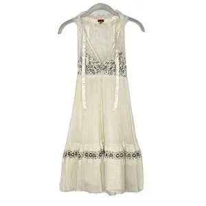 Free People Ivory Lace Up Embroidered Sleeveless V-Neck Midi Sheath Dress Sz 0