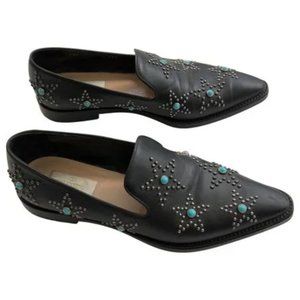 Valentino Garavani Star Studded Leather Loafers with Black Turquoise