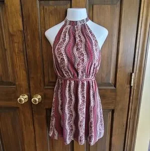 Love 21 Halter Dress Sz S Orange Gray & Cream W 24 P2P 16 L 19