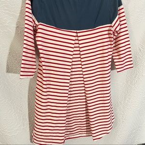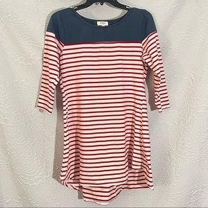 Umgee 3/4 Sleeve Red White & Blue Striped High Low Scoop Neck Dress
