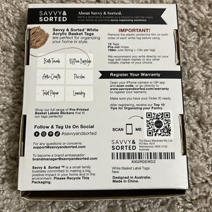 🔵5/$25🔵 NIB Savvy & Sorted White Acrylic Basket Label Tags