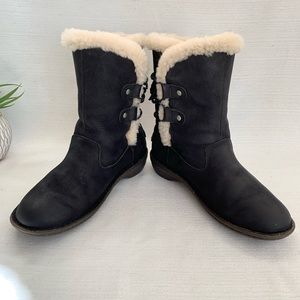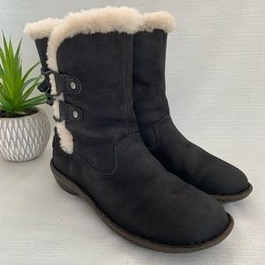 UGG Akadia Black Suede Leather Sherpa Lined Boots Women's 8