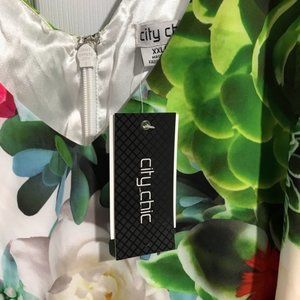 Summer Special Occasion Dress NWT City Chic succulent ivory floral XXL