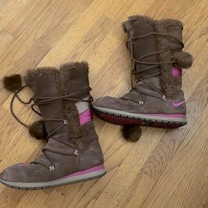 Vintage Nike Faux Fur Trim Suede Snow Winter Moon Boots Size 7 RARE Brown Pink