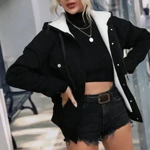 black Drawstring Hooded Thermal teddy Lined Black Denim Jacket