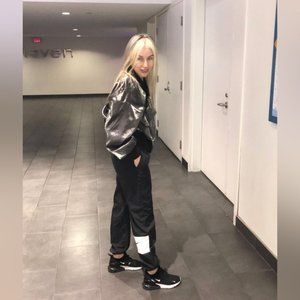 cropped, sporty, athletic, athleisure, shiny, metallic, bomber jacket, outerwear, zips, fall.
