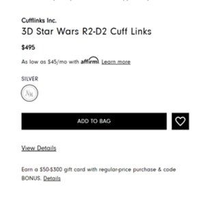 Neiman Marcus - Star Wars R2-D2 Sterling Silver Cuff Links - NWT ($495 in store)