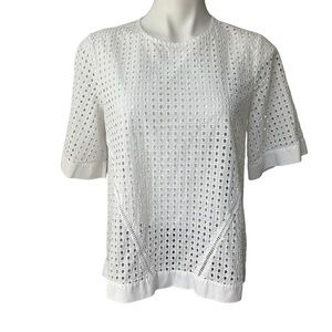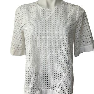 Banana Republic Factory Eyelet Top. Super cute, lightweight, sheer top. The front is lace/eyelet while the back is solid sheer white material. 100% Cotton.