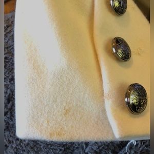 Excellent gently used condition. Ivory jacket with assymetrical zip front. Button detail on front and sleeves. Zipper detail on sleeves.