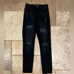 Fashion Nova Black Denim Straight Leg High Waist Distressed Jeans Size 1
