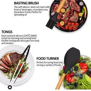 33 Pcs Silicone Cooking Utensils Set, Non-Stick, Heat Resistance (Black)