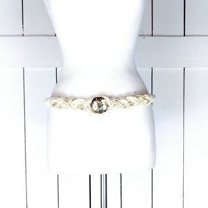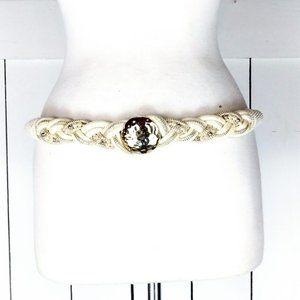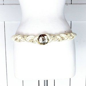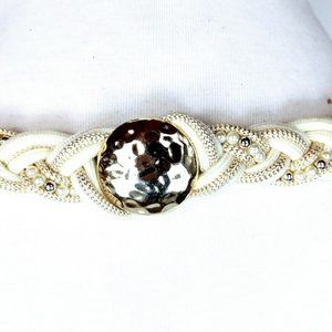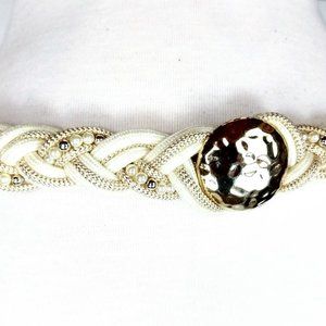 Vintage ivory braided gold medallion disc beaded rope belt/beaded woven chord belt