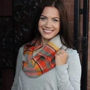 Autumn Vibes Plaid Fringe Knit Infinity Scarf