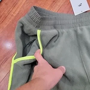 NWT Men's Nike fleece pants. It has 2 front pockets. Outside back of pants (from waist to knee) have the swishy/parachute material covering the fleece. Inside is all soft fleece. Style is standard fit.