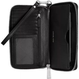 Keep it all together in a chic, organized style: Michael Kors' Jet Set multifunction zip wallet is used to keep your smartphone secure as well as your cards and cash, with a zip-around closure.