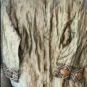 NWOT Metallic Bronze Citron Santa Monica Linen Blend 3/4 Sleeve Blouse/Jacket PL