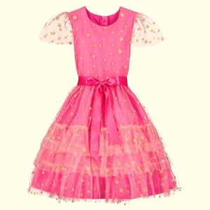 🎉HP🎉💖LONDON GOLD STAR DRESS HOT PINK BY HOLLY HASTIE PINK TULLE FRILL GLITTER