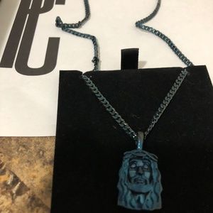 One of one "Messiah" pendant in azur blue from 424 On Fairfax's in-house jewelry line KG&Co., designed by famed Los Angeles designer Guillermo Andrade. Comes with 2 necklaces as well as an additional "Messiah" pendant in black.