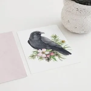 Raven Crow Bird Wall Art Watercolor Illustration Print Poster Card Unframed