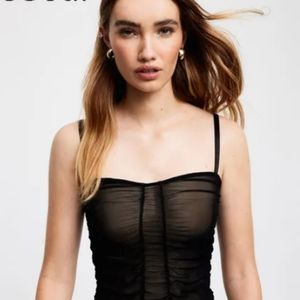 Sheer Mesh With Velvet Detailing, High Crew Neckline, Sleeveless, Thong Back For No Visible Panty Lines, 100% Cotton Gusset