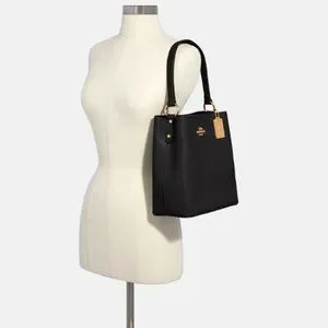 This bag is a spacious polished pebble leather Town bucket bag in an essential style with a long detachable crossbody strap and a top handle for versatile wear.