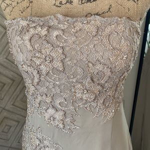 Gorgeous beaded nude colored silk dress, only worn once. Zipper in back along with bodice hooks to keep dress snug around chest.