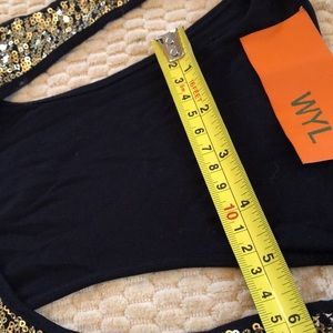 WYL Gold disc sequins front embellished, solid, soft black racer back tank