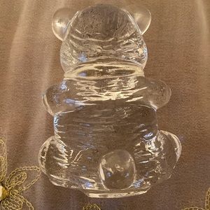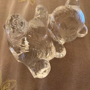 Clear Glass Sitting Teddy Bear with Bow.