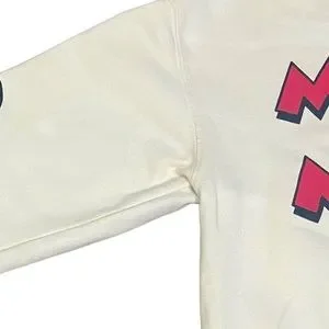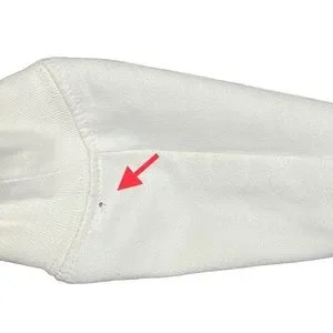 Great pre-owned condition with a couple minor flaws. Pinpoint dot on the inside of right sleeve cuff and slight stain on inside of left arm. Picture with arrows show the flaws. Priced accordingly. Doesn’t affect look or wearability of this adorable sweatshirt.