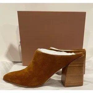 Womens Cushioned Ella Pointed Toe Block Heel Slip On Leather Heeled Mules Shoes