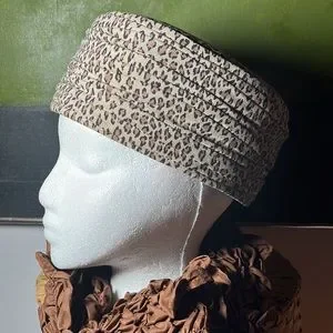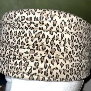 Vintage Whitehall & Shon pleated leopard patterned suede over bowman felt.