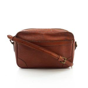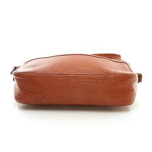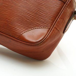 Exterior: Minor rubs, stains, cracks and tear on the leather parts, minor rubs on the corners, minor peeling and stickiness on the pocket, minor rubs and spots on the strap. Zipper works properly, some tarnish on the metal parts.