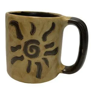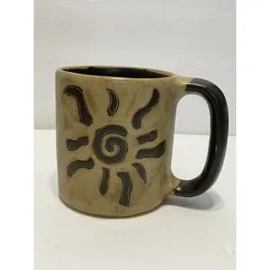 Mara of Mexico Brown Stoneware Coffee Mug Tea Cup Sun Energy Positivity Clarity.