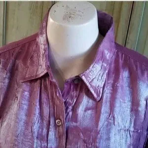 Karen Kane Purple Metallic Shimmer Button Up Blouse Top