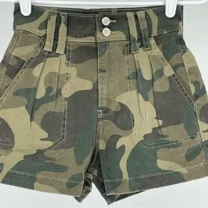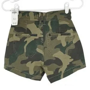 Hollister Women’s Ultra High Rise Twill Mom Shorts in Green Camo. New with tags. Size 00. Front and back pockets. High rise.