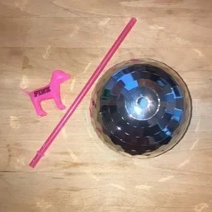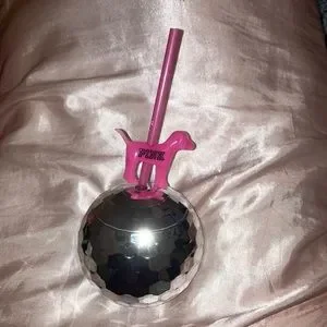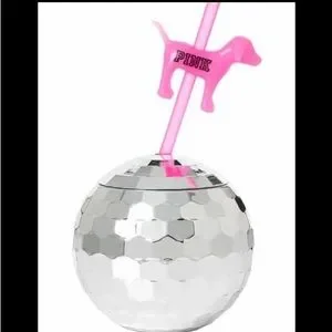 Disco Ball Cup with Pink straw and Pink dog straw decoration
