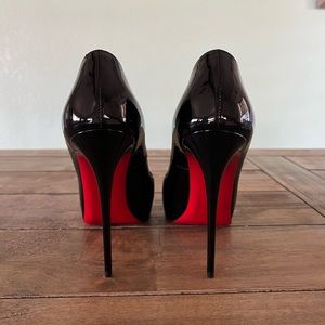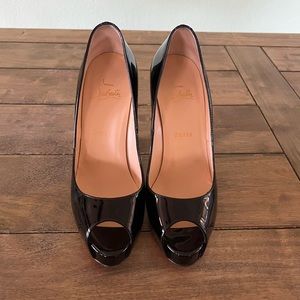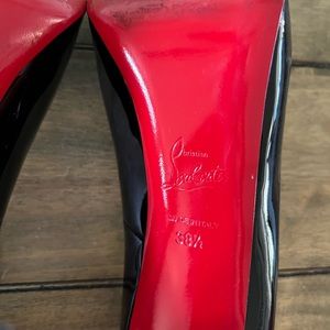 ❣️Christian Louboutin Very Prive 120❣️Literally only worn 1x❣️This designer runs smaller than US sizing! 38.5 would be best for a size 7.5 US.❣️I am not responsible for sizing so please know to the best of your ability❣️Black patent leather peep toe❣️No Box or dustbag!!… only comes with paper bag in pictures❣️Perfectly clean inside & out❣️ One minor flaw on inside of right heel (pic 8)❣️Details in pictures 9 & 10❣️Will be authenticated by Poshmark before arrival❣️From a smoke free home❣️🚫PP