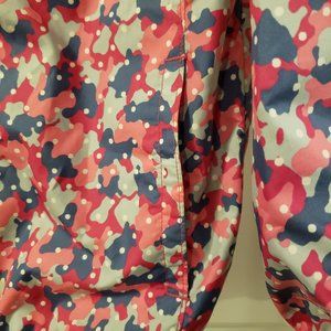 Columbia Girl's Pink Blue Grey Camo Print White Polka Dot Hooded Fleece Jacket Large
