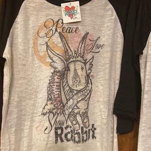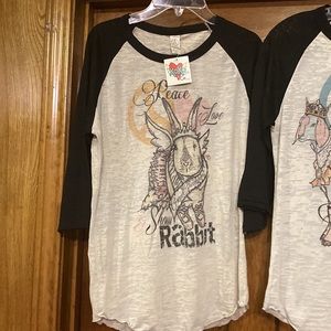 NWT Peace Love & Shown Rabbit/Goat - Baseball style Tee - XS, S, M, L (ABBA)